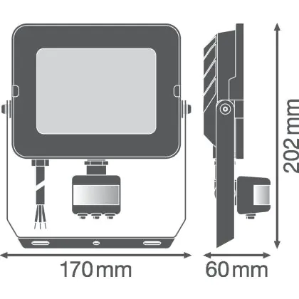 Descrizione Ledvance Proiettore LED Compatto Nero 50W 4500lm 100D - 830 Luce Calda | IP65 - Simmetrico - Sensore di movimento e luce
