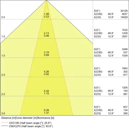 L'apertura del fascio luminoso indica l'angolo del fascio di luce proveniente da una lampada o lampadina. Si misura in gradi (D) e più piccolo è l'angolo, più piccola è l'apertura del fascio di luce.