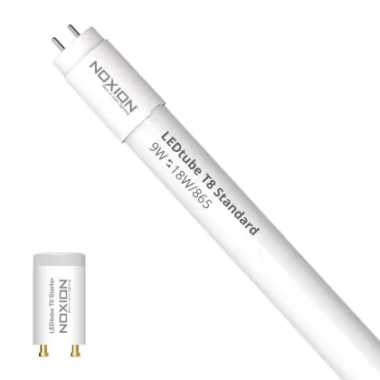 Il Noxion Tubo LED T8 Avant (EM/Mains) Standard Output 9W 900lm - 865 Luce del Giorno | 60cm - Sostitutiva 18W è l’alternativa perfetta per il tubo fluorescente standard 18W nelle plafoniere con un reattore. Con questo tubo LED hai una garanzia di una vita media utile molto lunga e 5 anni Lampadadiretta.it di totale garanzia. .