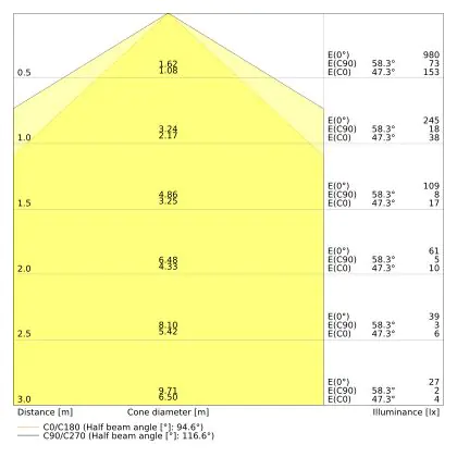 Il codice colore è una combinazione di resa cromatica (CRI) e colore della luce (Kelvin). La prima cifra indica la resa cromatica (1 = resa del colore molto bassa, 9 = massima resa del colore), mentre la seconda e la terza si riferiscono al colore della luce. Esempio: il codice colore 830 indica una buona resa cromatica (8) e luce bianca calda (3000K). |