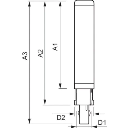 Questa lampada PL-C con attacco a due pin è ideale per un’installazione negli apparecchi luminosi che richiedono un attacco G24d-2. Si consiglia di controllare le dimensioni delle vecchie lampade a basso consumo PL-C, in quanto le misure delle alternative LED possono differire di alcuni millimetri.