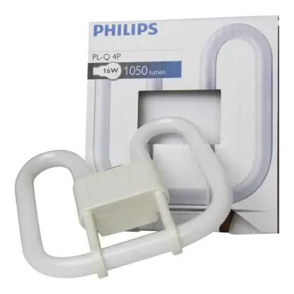 Le lampade Philips PL-Q 4P sono fluorescenti a forma di doppia D. Sono compatibili con trasformatori elettronici. Le Philips PL-Q 16W 835 4P presentano una base di tipo GR10q, a 4 pin ed hanno una potenza di 16W.