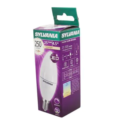 Questa lampadina a forma di candela dimmerabile è la soluzione ideale per un’illuminazione generale e decorativa. È adatta per un'installazione su lampadari a bracci in salotti, ristoranti, bar e negozi. La temperatura del colore calda da 2700 Kelvin favorisce un’atmosfera accogliente. Grazie alla tecnologia LED integrata potrai approfittare di un risparmio significativo sui costi energetici e di manutenzione! Questa lampadina, infatti, sostituisce le soluzioni da 25 W con attacco E14 consumando solo 4.5 W. Consente di regolare l'intensità luminosa in base alle preferenze illuminative per un ulteriore ottimizzazione dei consumi. Presenta un ciclo di vita fino a 25 volte più lungo rispetto ad una lampadina ad incandescenza e diversamente dalle lampade a risparmio energetico offre un’accensione istantanea fino al massimo della potenza. Inoltre, costituisce un’ottima alternativa ecologica in quanto non contiene materiali pericolosi per il nostro organismo e per l’ambiente.